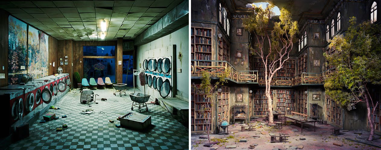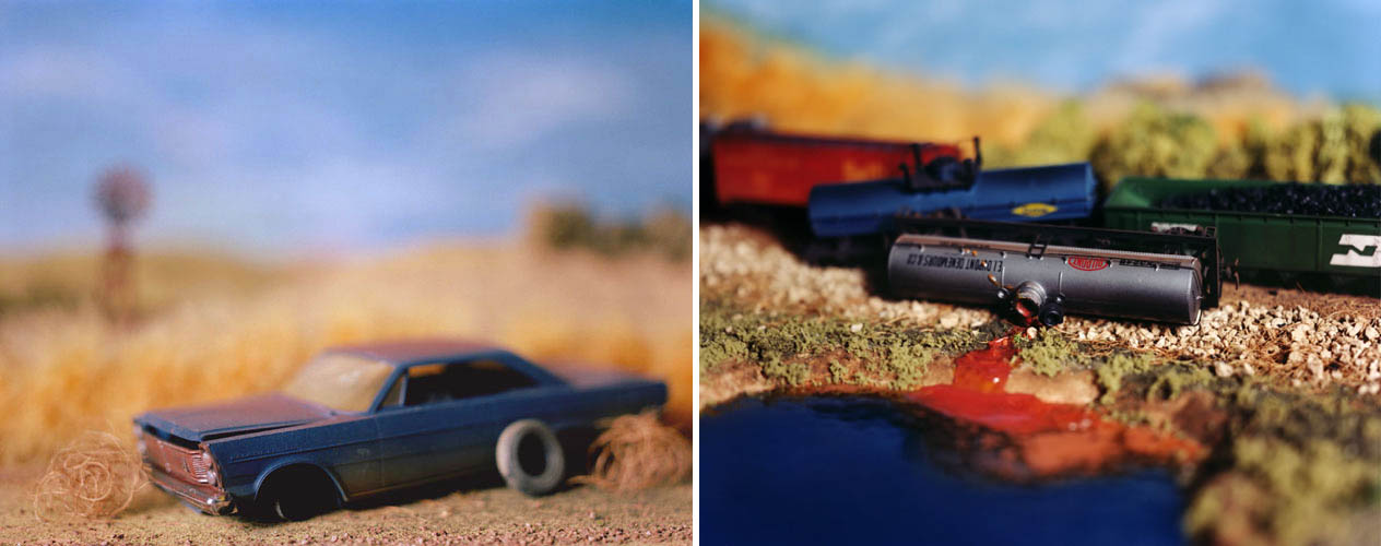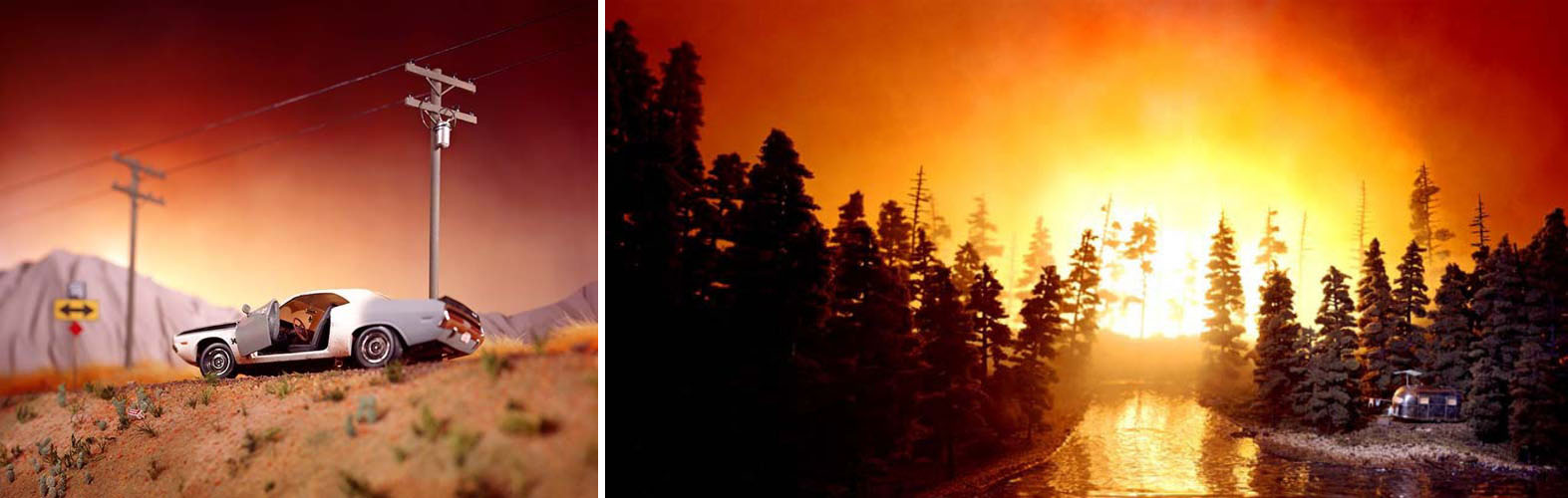 Lori Nix, EE. UU., 1969, es un fotógrafo que usa miniaturas y modelos para lograr sus imágenes. Un tema recurrente en casi todas sus fotografías es un desastre. En su serie y nbsp; accidentalmente kansas & nbsp;