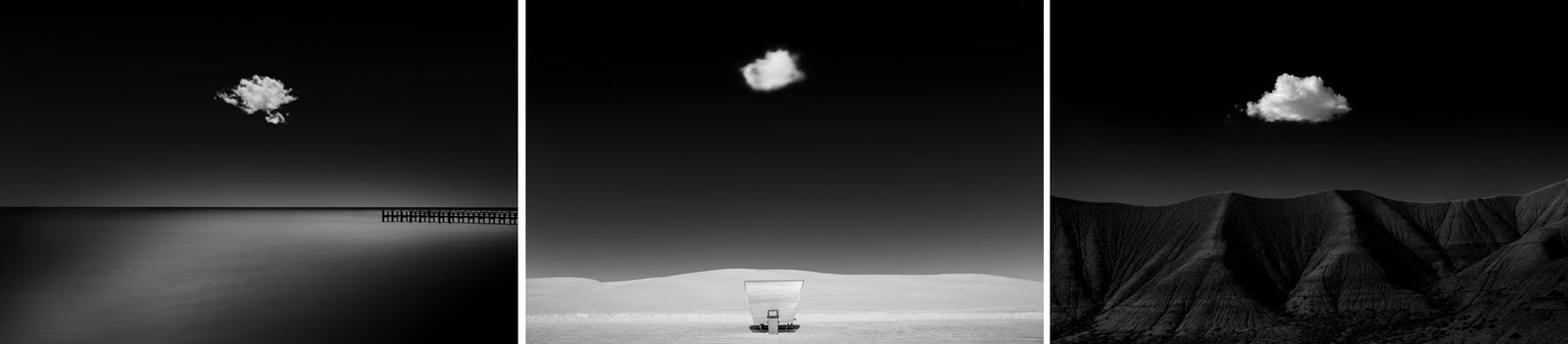 Cole Thompson, EE. UU., 1954, es un fotógrafo que, desde 2004, solo dispara digitalmente. Recoge varias imágenes para convertirse en una proyecto coherente. Los ejemplos son una serie de fotografías llamadas Harbinger en la que cada imagen consiste en una sola nube en el cielo. Otro ejemplo son las lámparas de techo del proyecto. Cole fotografió una gran cantidad de lámparas de techo desde abajo, imágenes de formas extrañas y abstractas. Las siguientes fotografías provienen de las lámparas de techo de la serie, Harbinger y The Lone Man.