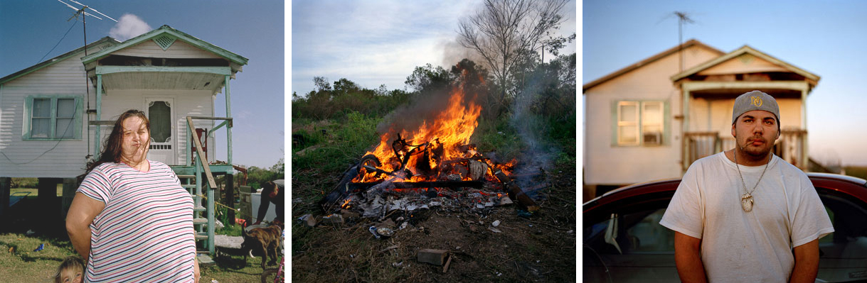 Stacy Kranitz, EE. UU., 1976, ha realizado una cantidad impresionante de proyectos. Entre su serie hay historias sobre peleas de gallo, el cantante de blues T-Model Ford y el Dakou de Beijing. La historia llamada The Island trata sobre la & nbsp; Isle the Jean Charles que está desapareciendo lentamente en el Golfo de México principalmente debido a las elecciones del hombre hechas en el pasado. Stacy ha sido publicada en varias revistas importantes con sus historias y sus retratos. Ella ha tenido varias celebridades frente a su cámara. Las siguientes imágenes provienen de su proyecto personas y sus proyectos los acechadores y la isla .