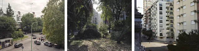 Thomas Locke Hobbs, 1976, EE. UU., es un fotógrafo que ha tenido su sede en Buenos Aires desde 2008. Aunque sus antecedentes son en economía y finanzas, decidió dedicarse a tiempo completo a la fotografía en 2008. Comenzó a seguir numerosos talleres para Además, sus habilidades técnicas, así como para definir qué fotografía es para él. Thomas trabaja de una manera muy exploratoria, investigando la ciudad en la que vive desde varias perspectivas diferentes. Su serie conceptual es el proyecto de un fotógrafo organizado que mira a la ciudad como un extraño. Su serie Ochava Solstice es una colección de fotografías de gran formato que muestran las esquinas de numerosos edificios. A principios del siglo XX, el gobierno ordenó que los edificios en las esquinas en Buenos Aires tengan bordes diagonales para mejorar la visibilidad de los automóviles. Sin embargo, desde la década de 1960 en adelante, los imperativos económicos del desarrollo inmobiliario exigieron el máximo metraje cuadrado. Los pisos de tierra son el borde diagonal, los pisos de arriba tienen bordes cuadrados. Esta forma de construir deja una sombra triangular que rastrea el sol como lo haría una esfera solar. Las siguientes imágenes provienen de la serie Ochava Solstice, Riverbank y Chalet Porteño.