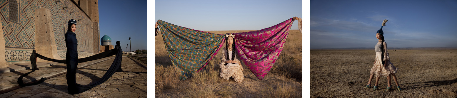 Almagul Menlibayeva, 1969, Kazajstán, es una fotógrafa y videocletera que trabaja y vive en Berlín y Kazajstan. & Nbsp; Estudió en la Academia de Arte y Teatro en Almaty, Kazajstan. & Nbsp; Su fotografía es una mezcla de nomáticos Estética de Kazajstán postsoviético y contemporáneo. En su proyecto encontramos retratos organizados en las vastas estepas y montañas entre el Mar Caspio, Baikonur y Altai en su país de origen. Ella afirma; "Uso formas de expresión específicas ... para investigar mi atavismo arcaico personal como un cierto antropomorfismo místico. Exploro la naturaleza de una experiencia psíquica cultural específica ... compartida que se manifiesta como una forma de pensamiento específica entre las personas (s) de las estepas antiguas, áridas y polvorientas ". /i> & nbsp; Su proyecto ha sido exhibido ampliamente en todo el mundo. Las siguientes imágenes provienen de varias series dentro de su proyecto.