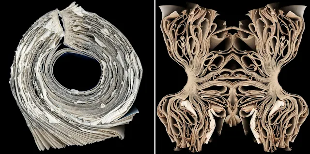 Cara Barer, EE. UU., 1956, es una fotógrafa que cambia la aparición de libros y otros artículos hechos de papel. A través de la experimentación, CARA ha encontrado varias formas de transformar los elementos en objetos elegantes que contienen una capa más profunda. Ella espera plantear preguntas sobre los cambios en las formas en que investigamos y encontrar nuestra información diaria.