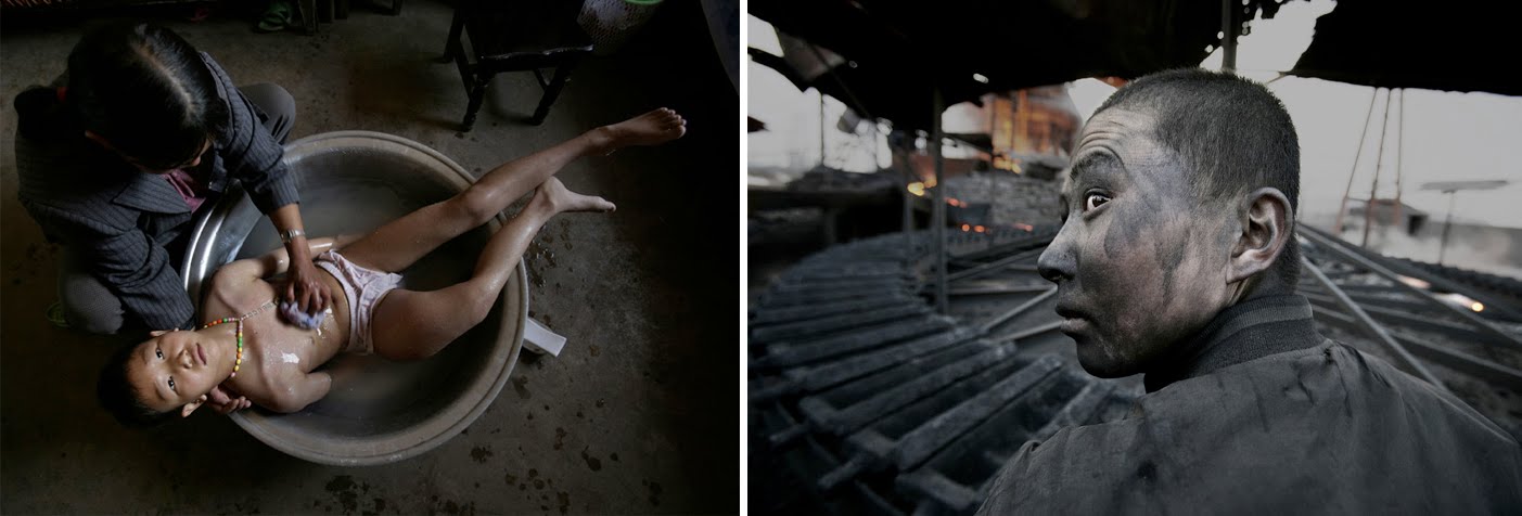 Lu Guang, China, 1961, comenzó con fotografía a la edad de 20 años cuando todavía trabajaba en una fábrica de seda. En 1993 asistió a la Universidad Tsinghua en Beijing. En 2003 ganó el primer premio en World Press Photo por su historia sobre el VIH. Ha cubierto historias en Golddiggers, el Sars Epedemic, el ferrocarril Qinghai-Tibet y muchos más. En 2009 ganó el W. Eugene Smith Grant por su serie sobre contaminación en China. Las siguientes imágenes son de contaminación en China.