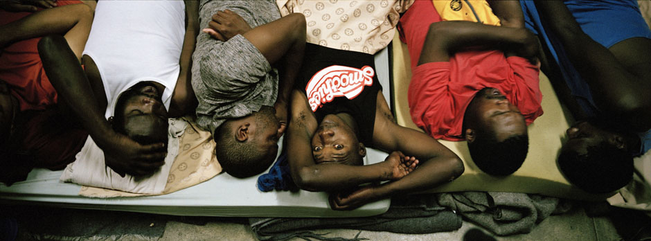 Mikhael Subotzky, 1981, Sudáfrica, trabaja y vive en Johannesburgo y es miembro asociado de Magnum Photos. Mikhael se ha concentrado en la vida en la prisión en varios proyectos. En 2008 lanzó el libro Beaufort West, sobre una pequeña ciudad con una prisión en el medio. La prisión está situada en el centro de un círculo de tráfico. Debido a la prisión, comenzó a explorar esta ciudad de tránsito y sus márgenes. Beaufort West se mostró en el Museo de Arte Moderno, Nueva York. Su último proyecto Ponte City, junto con Patrick Waterhouse, es una obra de arte. Fotografió cada ventana, puerta y televisión del edificio de cincuenta y cuatro pisos en Johannesburgo que ha tenido una historia llena de acontecimientos. Todas estas imágenes se han reunido en tres cajas de luz masivas de casi cuatro metros de altura, con proporciones similares a los edificios de la ciudad de Ponte. Las siguientes imágenes provienen de la serie umjiegwana, Beaufort West y Die Vier Hoeke.