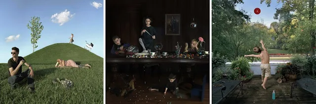Julie Blackmon, EE. UU., 1966, es la más antigua de nueve niños. Esto y el hecho de que hoy en día es madre de tres hijos resultó en su enfoque en la vida familiar en su fotografía. Para el proyecto Vacaciones domésticas, que fue lanzada como un libro, se inspiró en las pinturas de Jan Steen y otros pintores holandeses y flamencos del siglo XVII. Sus escenas escenificadas cuentan historias de la vida familiar, siendo tanto ficticias como auto-biográficas. Blackmon ha sido publicado en una gran cantidad de revistas y ganó varios premios. Las siguientes imágenes provienen de su proyecto Nuevo proyecto y de la serie Vacaciones domésticas y juegos mentales.