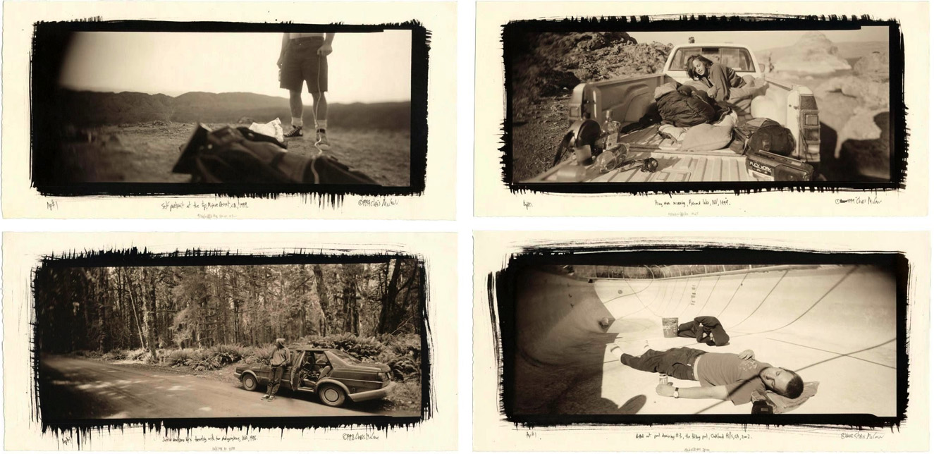 Chris McCaw, 1971, EE. UU., Recibió un BFA en fotografía en la Academia de Arte de San Francisco. Trabaja en su fotografía utilizando una cámara de gran formato y el proceso de platino/paladio. Su proyecto actual se llama quemaduras solares. Estaba haciendo exposiciones a las estrellas durante toda la noche mientras estaba en un viaje de campamento en 2003. Se despertó tarde y, por lo tanto, el obturador no estaba cerrado a tiempo. Lo que descubrió por error fue el comienzo de un nuevo proyecto. El sol ascendente estaba tan enfocado y poderoso que cambió físicamente la película. El sol arde su camino hacia lo negativo creando un efecto llamado solarización, una inversión natural de la tonalidad debido a la sobreexposición. Lo negativo literalmente tiene un agujero quemado con el paisaje circundante en una inversión completa. Luego comenzó a experimentar y perfeccionar su técnica usando el sol como participante activo en sus imágenes. En 2006 eligió usar el papel de gelatina B, W basado en fibra vintage. La gelatina en el papel se cocina y deja colores naranja y rojos. & Nbsp; De esta manera creó negativos de papel único. Su serie la granja familiar y Travelogue fueron filmadas usando una cámara de vista 7x17 ". De esta manera era capaz de crear impresiones de contacto directas de 7x17" a mano. Desde 1996 también utiliza esta técnica para clientes con negativos digitales utilizando el método de Dan Burkholder. Las siguientes imágenes provienen de las quemaduras solares, la granja familiar y Travelogue.