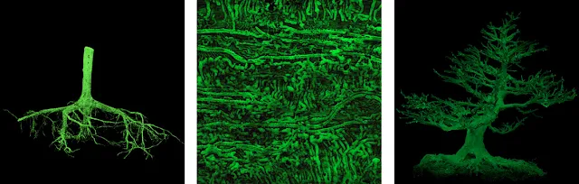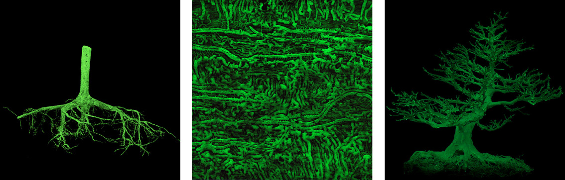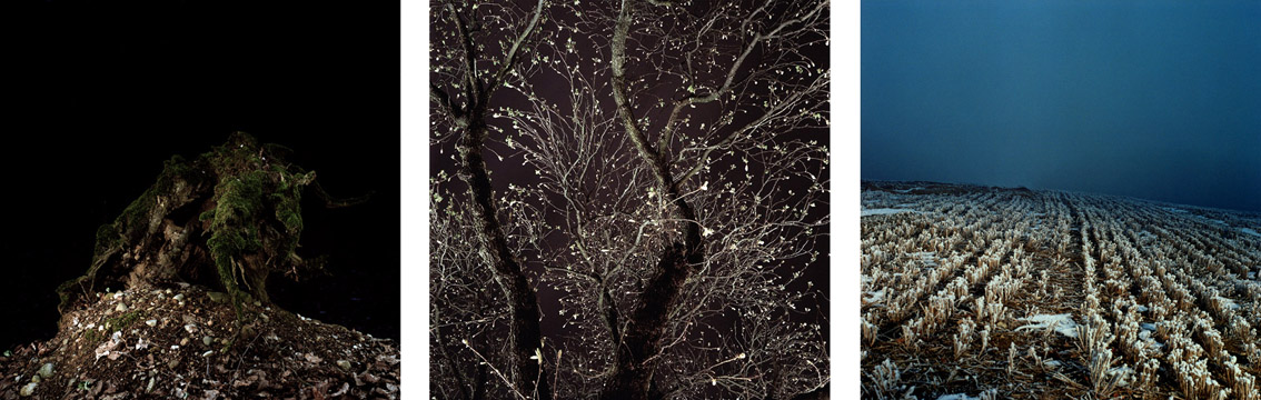 Marianne Engel, 1972, Suiza, es una fotógrafa que también se concentra en otras formas de arte. Ella crea objetos, trabaja en instalaciones y colabora con varios artistas. Se graduó en bioquímica en la Universidad de Zürich en 2001. El interés en la bioquímica es visible en varios cuerpos de obras. En los objetos como bacterias, peces y árboles de bonsai, usó un brillo en el pigmento oscuro creando imágenes alienígenas. Sus fotografías de árboles y otros objetos en la naturaleza, a menudo fotografiados en la oscuridad usando una pintura con técnica de luz se vuelven mágicas y fantásticas. Sus fotografías son dramáticas y a menudo se sienten como una alucinación. Las siguientes imágenes provienen de su extensa proyecto.
