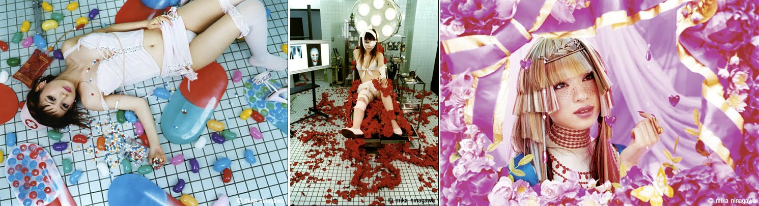 Mika Ninagawa, Japón, 1972, es una fotógrafa muy productiva. Sus imágenes están llenas de color y aún tienen un enlace directo a las antiguas artes de Japón. Ha sido exhibida en todo el mundo y ha sido publicada en 35 libros en los últimos 13 años. Las siguientes imágenes provienen de la serie flores y moda, Retratos.