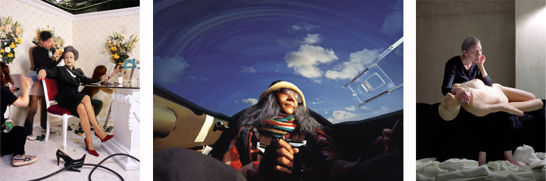 Miwa Yanagi, 1967, Japón, fue reconocido en 1994 con su serie ascensor que mostraba grupos de niñas uniformadas en interiores grandes y estériles. Su fotografía es a menudo teatral y manipulada. Su última serie; Las mujeres azotadas por el viento muestran mujeres gigantescas de diferentes edades en posturas guerreras. Las impresiones finales también son inmensas. En mis abuelas pidieron a las mujeres jóvenes que imaginaran sus vidas 50 años en el futuro. Luego pasó a fotografiar a las mujeres con el uso de maquillaje y otros atributos. En Fairy Tale ella mejoró las escenas de los cuentos de hadas como Blancanieves y Cenicienta. Su proyecto se trata principalmente de mujeres en combinación con la cultura japonesa. Las siguientes imágenes provienen de la serie mujeres azotadas por el viento, mis abuelas y Fairy Tale.