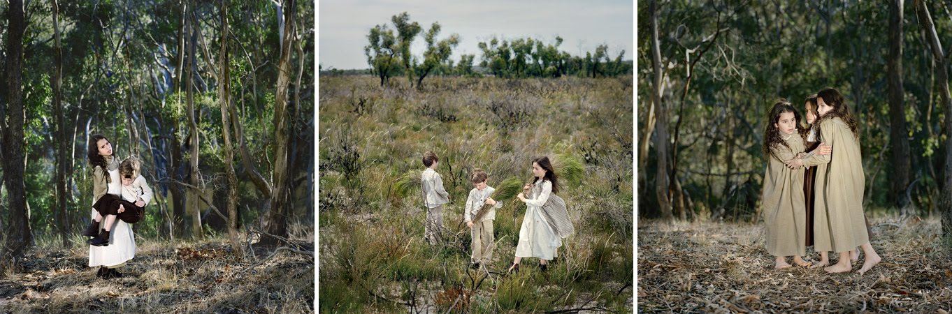 Polixeni Papapetrou, Australia, 1960, solía hacer imágenes que trataban con la identidad y la cultura contemporánea, pero ahora toman fotografías que se concentran en los temas de la infancia y los recuerdos de la infancia. A menudo usa a sus propios hijos, Olympia y Salomon, en sus fotografías. En su última serie entre Worlds, hizo imágenes de niños con máscaras. Aunque parece que las fotografías son meramente humeuristas, existe un tema subyacente serio. Las siguientes imágenes provienen de entre mundos, & nbsp; country embrujado y dreamchild.